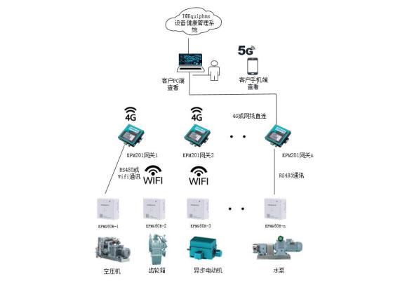 通过传感器采集设备的振动数据,以无线或有线方式经过路由器传输至平台。 此架构既能实现本地化数据监测,同时也能实现远程对数据的监测和诊断。