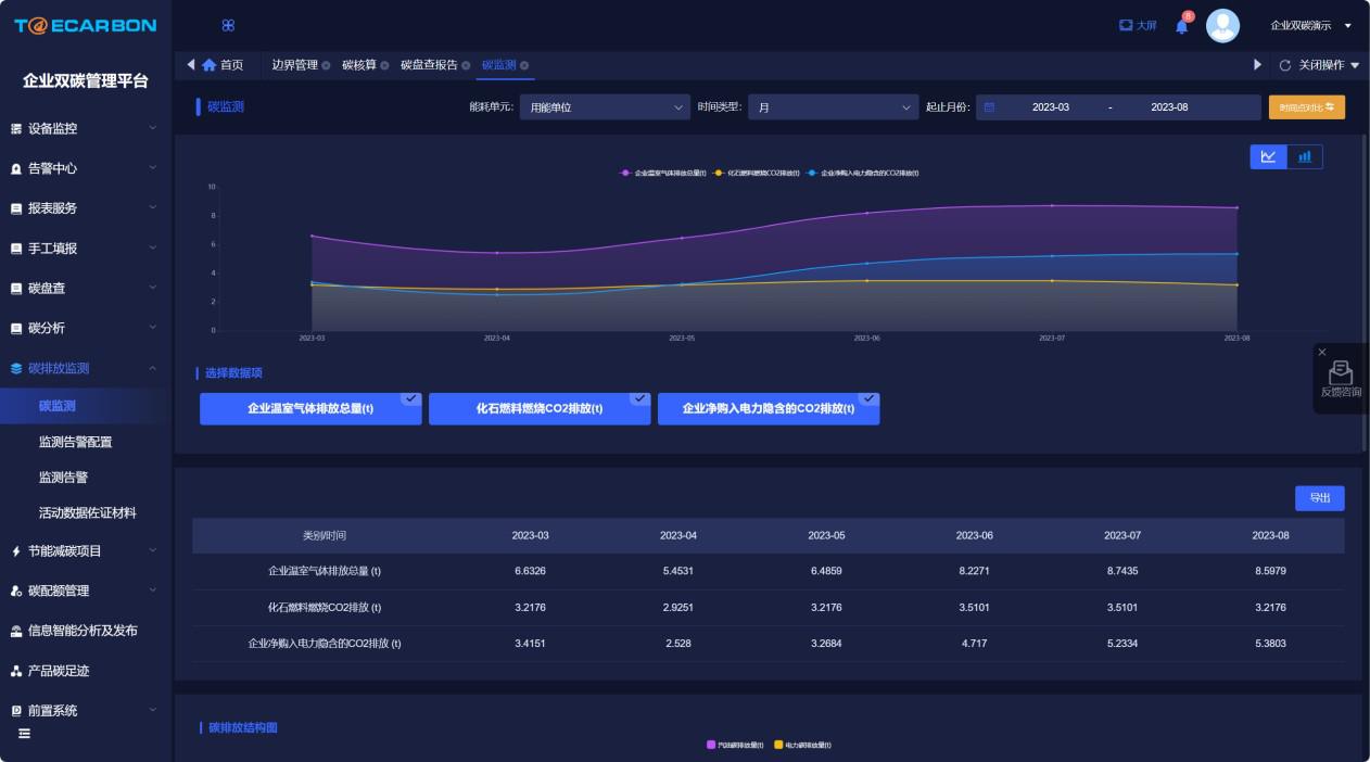 智慧能碳管理系统是支撑工业企业和园区提升能耗双控和碳排放双控管理水平的信息系统。旨在可帮助企业申报绿色工厂且满足《工业企业和园区数字化能碳管理中心建设指南》中十二项功能。
