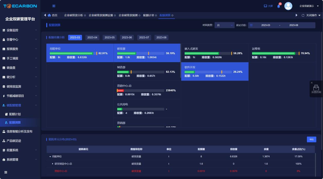 数字化能碳管理系统平台是支撑工业企业和园区提升能耗双控和碳排放双控管理水平的信息系统,是加强工业节能降碳管理,推进数字技术赋能绿色低碳转型的基础工具。旨在帮助企业申报绿色工厂,满足《工业企业和园区数字化能碳管理中心建设指南》中十二项功能,即能耗查询、能源消费量和强度计算、能源消费分析与用能策略推荐、能效对标、能流分析、能效平衡与优化、用能与碳排放预算管理、碳排放、碳足迹核算、供应链碳管理、碳核查支撑、碳资产管理等功能。