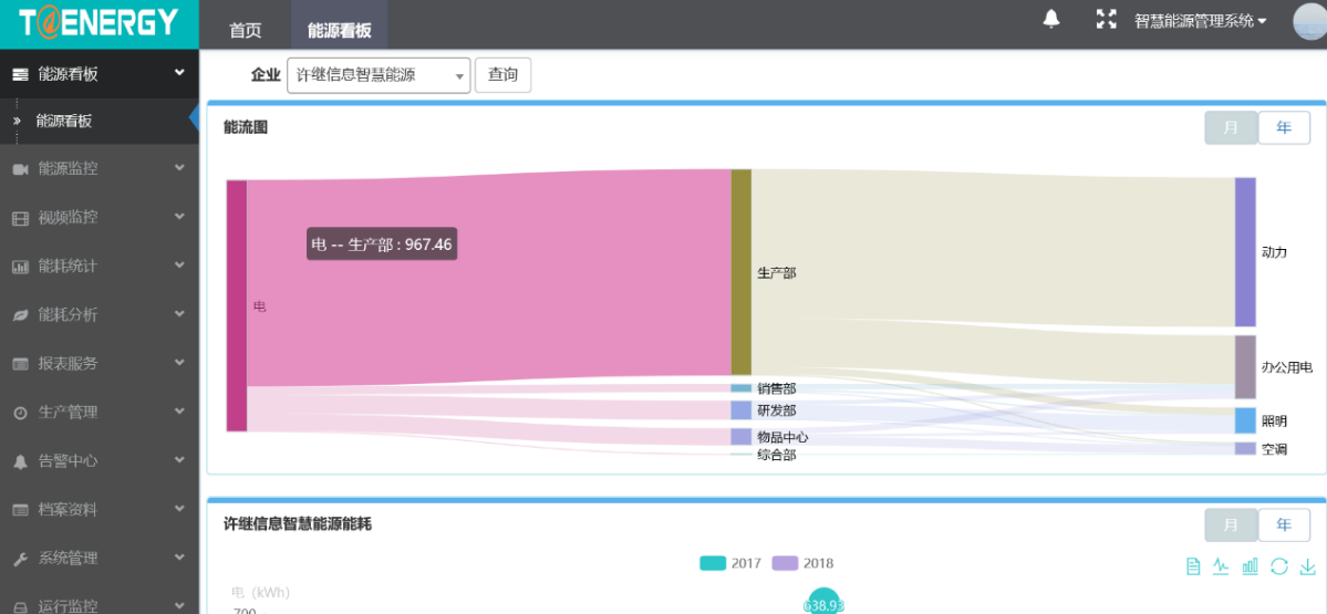 对部门能耗类型、设备能耗数据进行统计和分析。