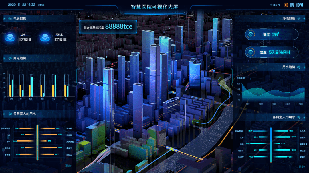打造医院的大数据及能源管理大屏展示系统,实现数据的管理和展现,要求平台具有优秀的适应性和扩展性,以适应不同业务场景的数据需求。