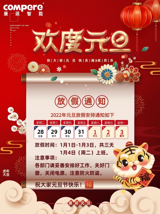 根据国务院办公厅有关节假日放假的通知精神,现就公司 2022 年“元旦节”放假安排如下: